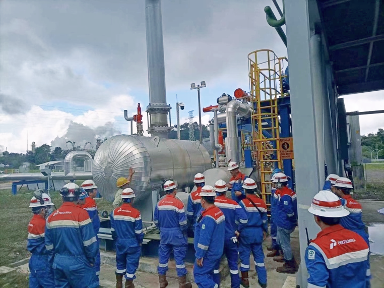 2021年7月PGE在其Lahendong地?zé)犭娬具M行了500kW地?zé)嵛菜⌒碗娬緦嶒烅椖縀PC招標(biāo)。開山作為唯一電站設(shè)備供應(yīng)商向中標(biāo)總承包商——日本橫河(印尼)提供發(fā)電機組。今年年初該電站建成并網(wǎng),不幸的是,在進行72小時運行測試時發(fā)生了電機燒毀事故,開山要求發(fā)電機制造商(日本公司)供應(yīng)了替代電機。日前,PGE實驗項目已順利通過驗收。