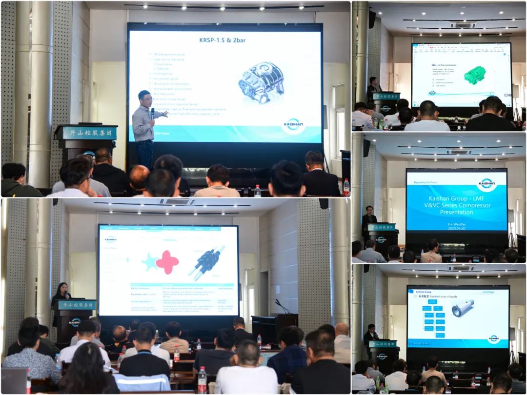 培訓中,開山海外事業部產品市場經理徐寧做了全譜系開山螺桿壓縮機產品介紹;開山無油壓縮機產品經理王子珍、開山離心壓縮機技術主管歐志奇、高壓往復壓縮機研究所所長謝偉偉、開山工藝(氣體)壓縮機經理倪健、開山壓縮機公司技術部經理黃劍等分別就各自負責的產品給代理商們做了技術匯報。值得一提的是,工程技術人員擁有雙語能力做流利演講和答疑的能力,顯示開山已經做好了開拓海外市場的人力資源準備。
